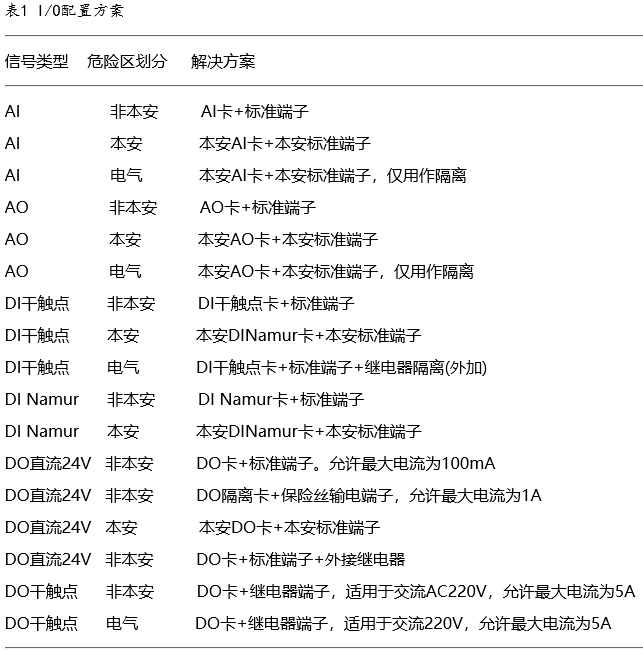 不同的信号类型通过不同的CHARM插槽配合不同的CHARM模块来解决。不同的信号类型,有不同的解决方案,该装置的I/O配置方案见表1所列。