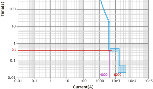 8s@6Ir,短延时保护整定电流Isd设定为10Ir,短延时时间设定为0.4秒,见图3。